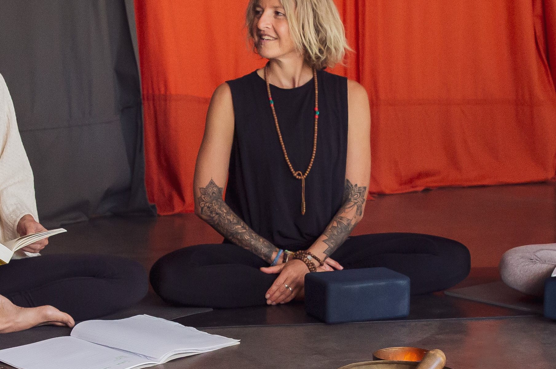 Pratiques guidées, Ateliers techniques et posturaux, Pranayama & Chants, Plongée dans les Yoga Sutra de Patanjali.